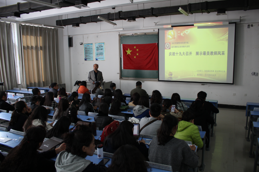 为进一步弘扬立德树人、爱岗敬业、为人师表、严谨笃学的高尚师德,营造尊师重教的浓厚氛围,发挥学校“最美教师”的示范引领作用,用身边的先进典型激励鼓舞和教育身边人,为庆祝党的十九大胜利召开营造良好的宣传舆论氛围,根据学校庆祝党的十九大召开总体宣传活动安排要求,开云kaiyun官方网站于11月2日下午,在龙子湖校区1号教学楼304举行了“庆祝十九大召开 展示最美教师风采”--“最美教师”走进“道德讲堂”活动。会议活动由院党总支书记王在钦主持。