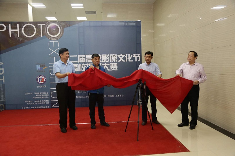 颁奖结束后,由程慎、赵洪、新华网河南频道总编辑梁鹏以及郑州铁路职业技术学院党委副书记谢乾共同为“河南省高校摄影大赛作品展及第三届河南高校影像文化节”启动仪式揭幕。