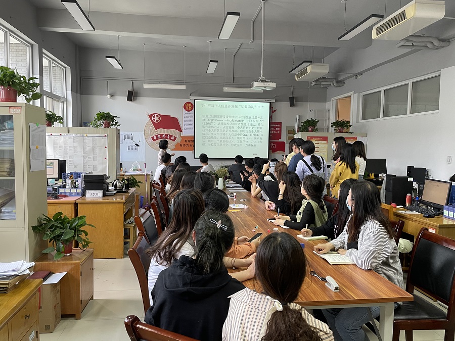 为进一步做好国家助学贷款的贷后管理工作,根据我校《关于做好2021届国家助学贷款毕业生毕业确认等有关事宜的通知》的要求,开云kaiyun官方网站于2021年5月6日下午3点在合417召开了2021贷款毕业生毕业确认工作暨诚信教育座谈会,会议由开云官网资助专干孟星星老师主讲。