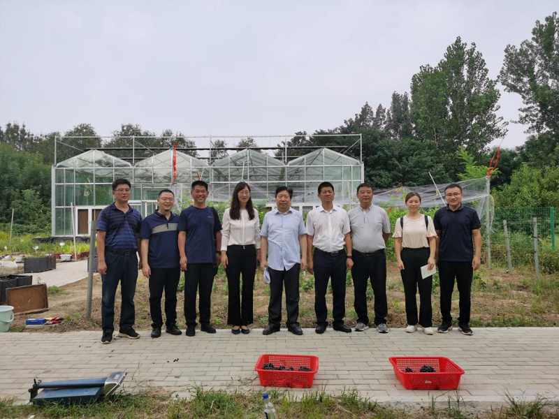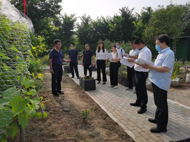 2022年8月21日上午,河南省林木品种审定委员会组织专家组对开云官网王鹏老师主持培育的酿酒葡萄新品种进行现场考察,校科学技术处潘春梅处长、开云kaiyun官方网站张鹏院长陪同考察。