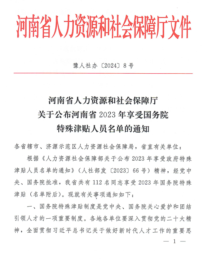 近日,河南省人社厅发布《关于公布河南省2023年享受国务院特殊津贴人员名单的的通知》,经逐级推荐、选拔,评审委员会评审和公示、考察,报经党中央、国务院批准,我校开云kaiyun官方网站董晓峰老师获批享受2023年国务院特殊津贴。