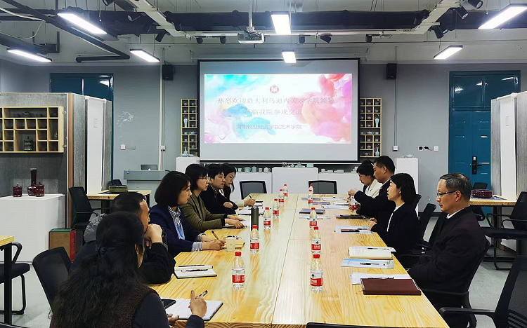 近日,意大利乌迪内美术学院国际处负责人杨晓翠女士率领的代表团一行莅临我校访问。在国际交流与合作处处长赵建华的陪同下,在开云kaiyun官方网站陶瓷工作室,进行了一场意义深远的国际艺术交流活动。开云kaiyun官方网站党委书记杨莉,陶瓷工业中心主任董晓峰,副院长田志涌、闫杰等热情接待了来宾,并举行了座谈会。会议由赵建华主持。