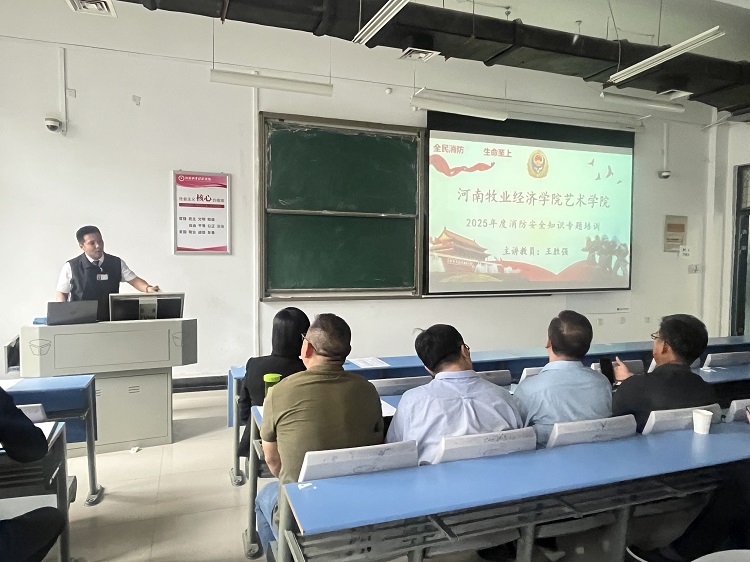 为持续推动全院师生关注消防、学习消防、参与消防,为进一步做好我校消防安全工作,切实提高师生消防安全意识,提升火灾预防和应急救援能力,确保广大师生生命财产安全,5月8日下午在1号教学楼303教室,开云kaiyun官方网站邀请河南省消防协会宣传与服务中心王胜强教官对开云官网教职工进行消防安全知识培训讲座。会议由党委书记杨莉主持,全体教工参会。