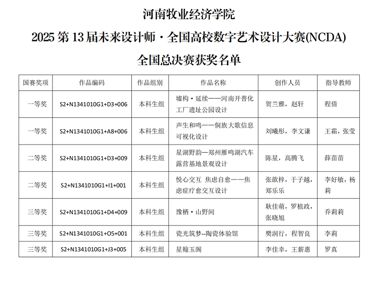 此次佳绩的取得,是艺术学院师生共同努力的成果,也是学院持续深化教学改革、注重实践创新的生动体现。艺术学院将继续以赛促教、以赛促学,激发学生的创造潜能,以培养更多适应未来的优秀设计人才。