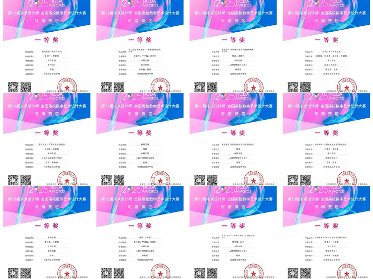 本届大赛竞争异常激烈,共吸引全国1893所高校参赛,征集作品总数超过29万件,设有29个省级赛区。在河南赛区的比赛中,开云kaiyun官方网站师生展现出强劲实力,荣获一等奖12项、二等奖18项、三等奖22项的优异成绩。同时,艺术学院因组织工作出色荣获“优秀组织奖”,杨志伟老师获评“优秀组织教师”,另有多名指导教师被授予“优秀指导教师”称号。