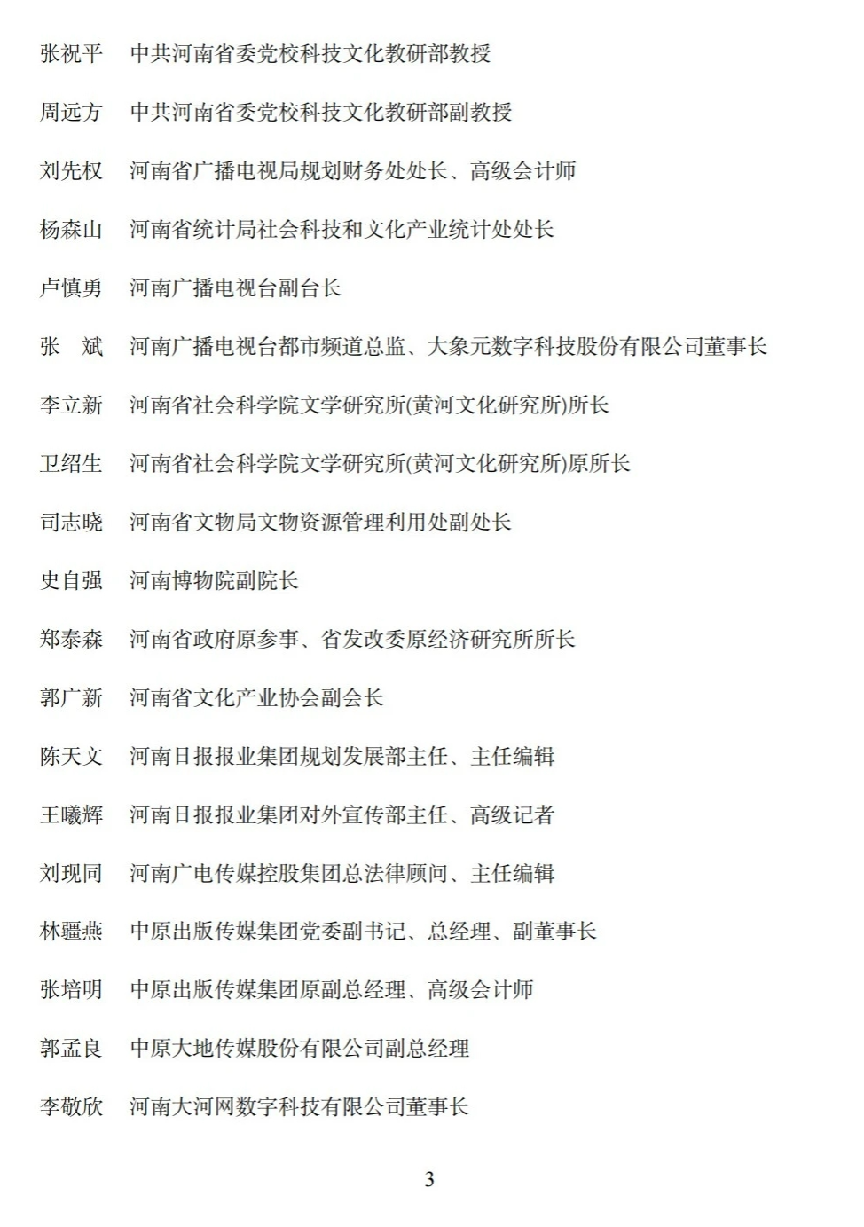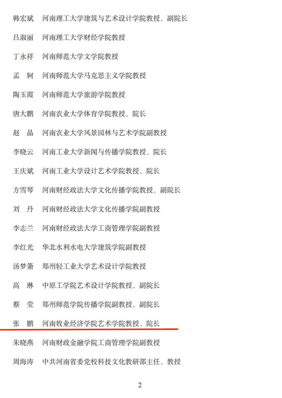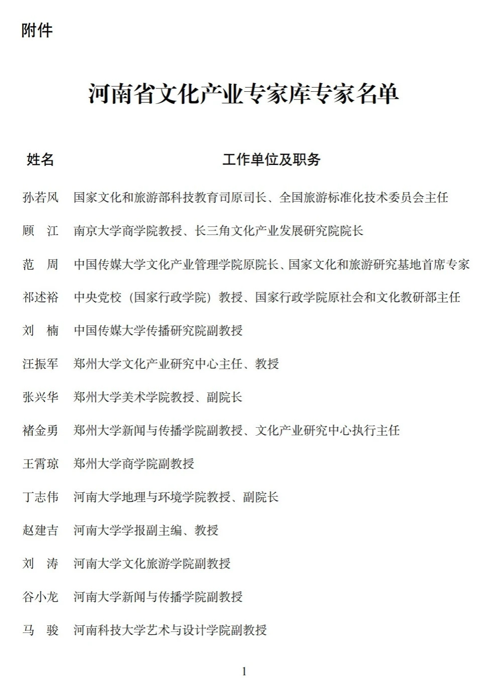 近日,中共河南省委宣传部正式发布《关于组建河南省文化产业专家库的通知》,公布了河南省文化产业专家库首批60名入选专家名单。我校开云kaiyun官方网站院长张鹏教授成功入选,成为该专家库的首批成员。