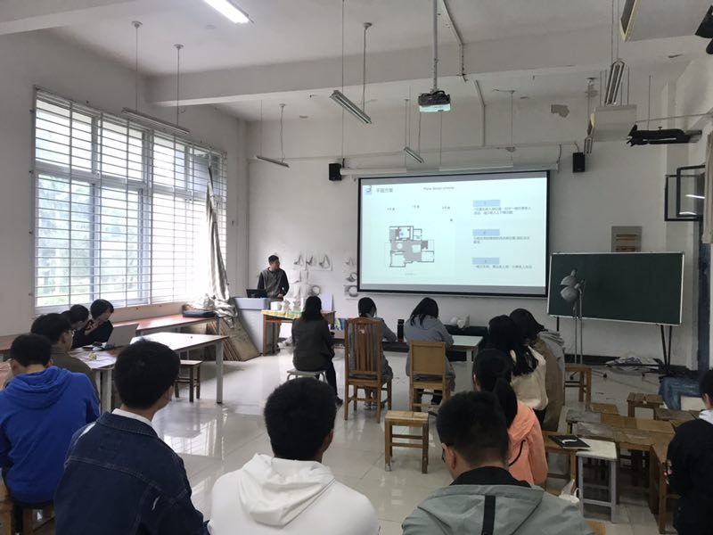 每位毕业生根据前期毕业设计进度情况,从方案设计背景、设计风格、设计内容的完善、施工材料及工艺等方面逐一向老师们进行汇报,各位老师就学生的PPT汇报中存在的问题进行提问,在检查过程中,老师根据学生毕业设计的工作量、进度和设计质量的优劣提了很多建设性的意见。中期检查现场气氛严肃紧张、互动热烈,与会教师、同学们都受益匪浅。