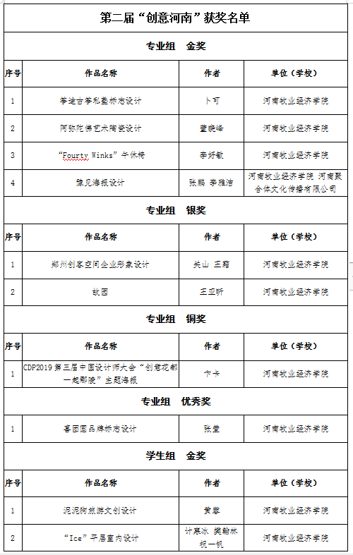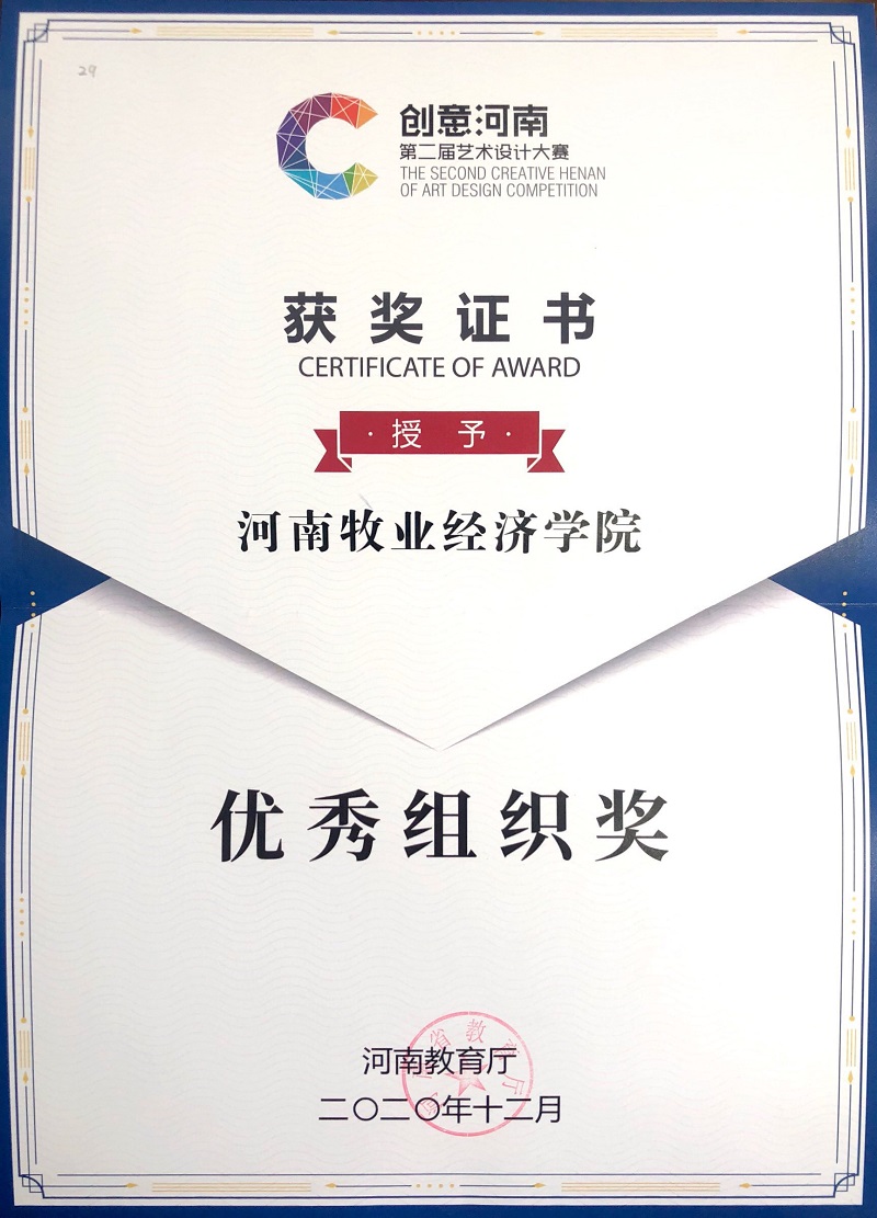 “创意河南”是由河南省教育厅主办的创新设计大赛,分为专业组和学生组。开云kaiyun官方网站高度重视和鼓励师生参加各种赛事,积极组织师生参与各类大赛,并制定参赛方案,成立专门赛事组织,加强对赛事活动的组织领导和专业指导。经过认真准备,不断改进,严格筛选,共推选出32套学生作品、28套教师作品参与此次大赛评选。