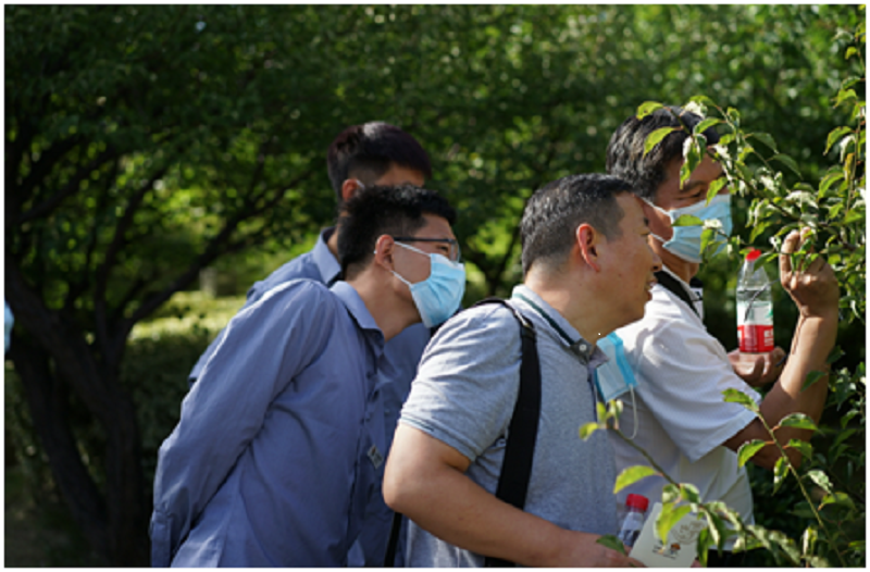 首先,在张泮主任的带领下,园林教研室老师重点参观了豫园、北京园、苏州园等几个园区。期间,张主任对园博园基本情况做了介绍,对每个园区从设计到施工的过程也做出了较为详细的讲解。同时,张主任也提出了目前园博园在景观维护、植物养护等方面存在的问题与困扰。园林教研室老师对园区内现状进行了现场评估,肯定了园博园在各个方面所做的工作与努力,并针对一些较为突出的问题做了现场分析,给出了中肯的建议。随后,张主任和园林教研室老师进行座谈,张主任重申了目前面临的问题,并希望通过校企合作等各种方式,进一步加深园博园和园林专业的纵深合作,以求达到合作共赢、共谋发展的目的。园林教研室主任左金淼老师对对校企合作方式等问题做出了总结。王鹏老师则重点对园区内的植物养护、病虫害防治等具体问题做出解答,并表示双方可加快合作进程,进行人员培训,从而解决现实问题。最后,宗建伟博士建议以本次合作为契机,推进学生实习实训,加快产教融合共育人节奏,并做好园区工作人员多层次、多形式的技能培训,提升园林专业社会服务能力。