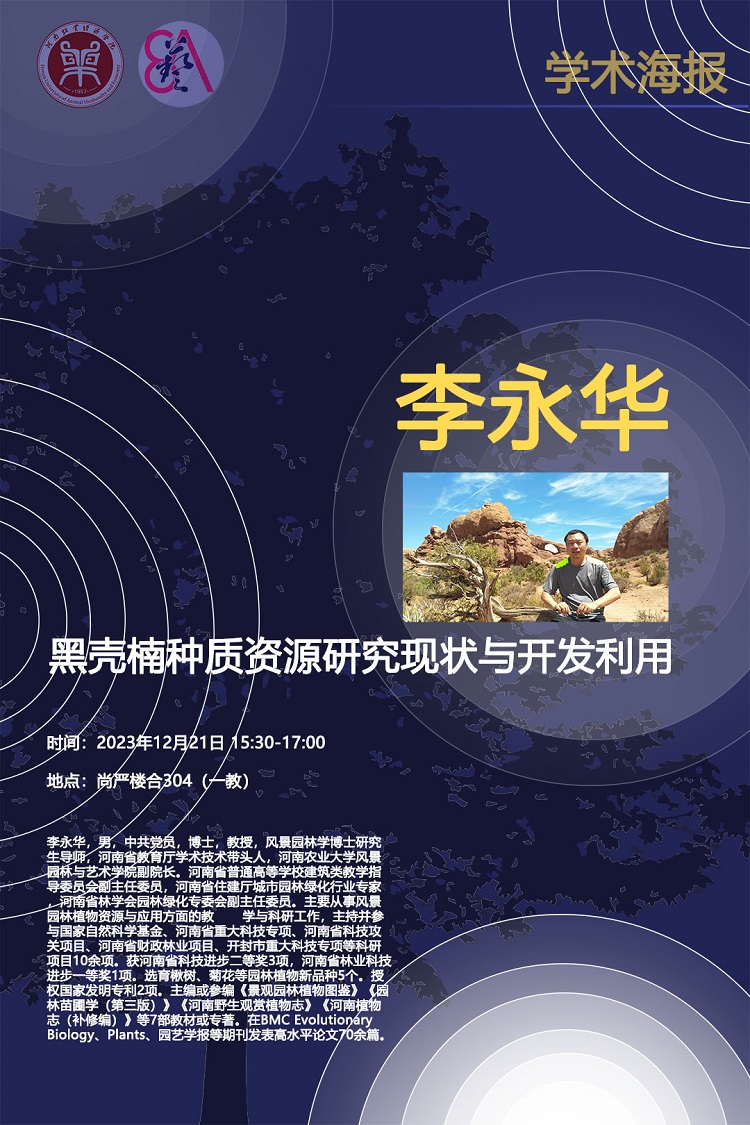 2023年12月21日下午,河南农业大学风景园林与开云kaiyun官方网站副院长、博士研究生导师、河南省教育厅学术技术带头人、河南普通高校建筑类教学指导委员会副主任委员李永华教授在龙子湖校区1号教学楼合304教室一场题为“黑壳楠种质资源研究现状与开发利用”的学术报告。报告由开云kaiyun官方网站院长张鹏主持,全体教师及园林专业全体学生参加。