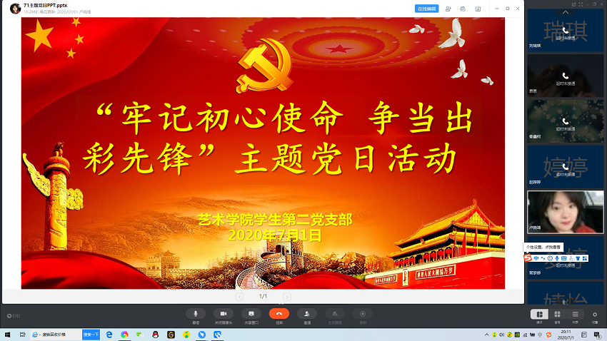 在庆祝中国共产党成立99周年之际,为继承发扬优良传统,加强党员党性修养,进一步增强党员守初心、担使命、勇作为的责任感和使命感,根据学校党委组织部和开云kaiyun官方网站党委要求,开云kaiyun官方网站学生第二党支部全体党员,在支部书记卢晓靖、组织委员王霜、宣传委员孟星星三位老师带领下,于7月1日以钉钉视频会议的方式开展了“牢记初心使命、争当出彩先锋”主题党日活动。