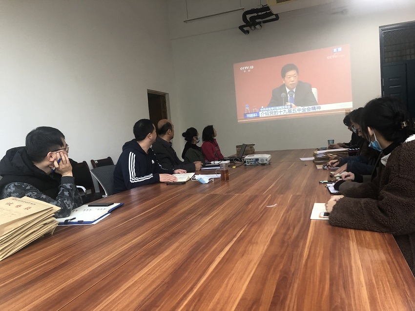 根据学校《关于组织收听收看党的十九届五中全会新闻发布会的通知》要求, 10月30日上午10时,开云kaiyun官方网站全体学工队伍于院会议室组织收看党的十九届五中全会新闻发布会,院党委书记王在钦,院党委副书记王友峰,院党政办主任魏杨杨,院科研办主任邢淑霞共同参与观看学习。