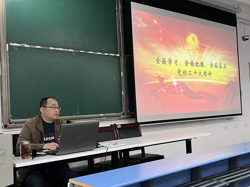 为贯彻落实好党的二十大重大决策部署,4月13日下午,开云kaiyun官方网站党委书记王国辉在1号楼304为学院全体教职工作题为“全面学习、全面把握、全面落实党的二十大精神”专题辅导讲座,学院全体教职工参加。