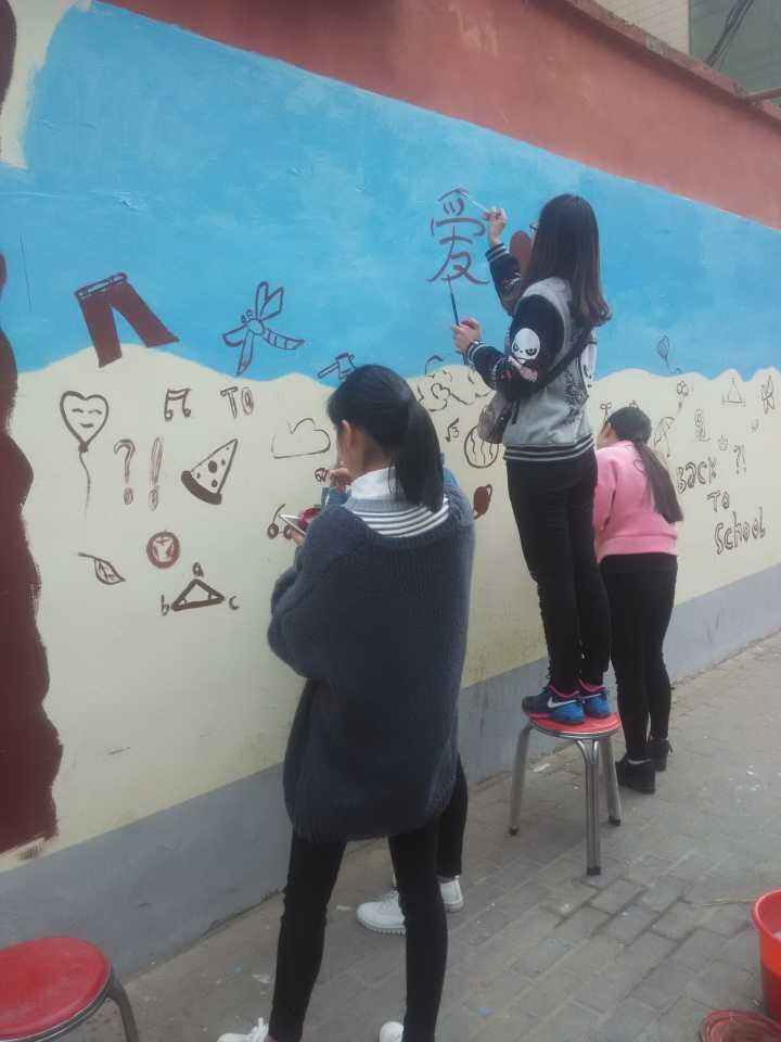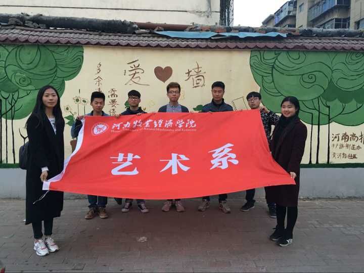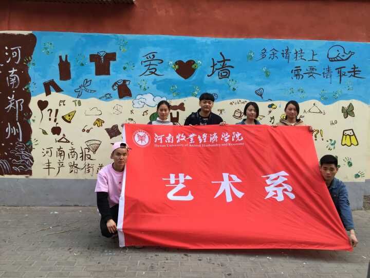 3、雷锋月中艺术系团学会和河南商报联合完成爱心墙绘活动。在郑州两个社区的两面空白墙面上进行颜色的手绘涂鸦,并标有“多余请挂上,需要请取走”的字样,让无家可归的人们有尊严的获取衣物保暖。我们用自己熟练做的事情不仅给城市带来一抹新鲜的色彩,也发扬了雷锋精神帮助别人,一直把雷锋精神永远的传承下去。