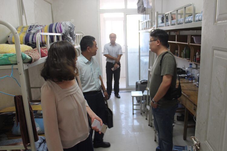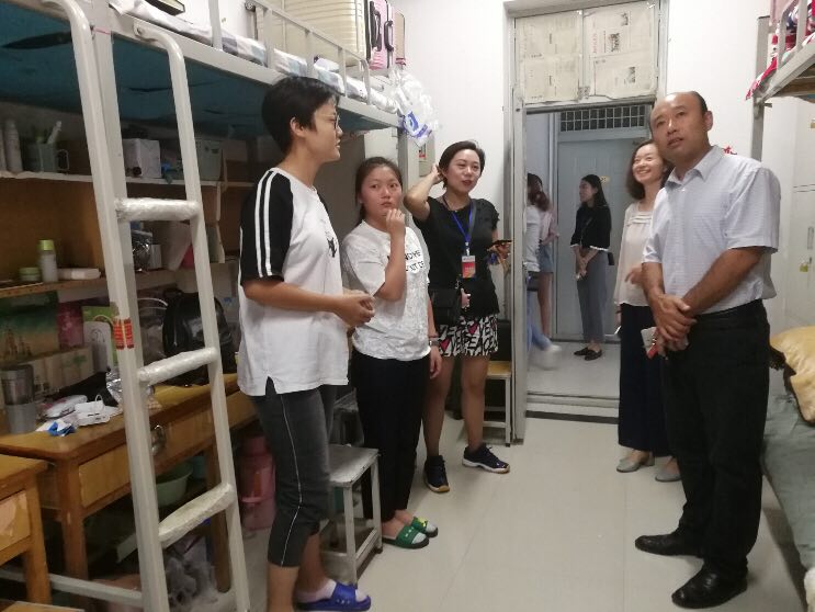 9月9日17时,开云kaiyun官方网站党总支书记王在钦、开云kaiyun官方网站主任田秀群、党总支副书记贾艳艳、团总支书记韩飞、18级新生辅导员李巍然、王霜、李好敏以及助理班主任等一行人来到新生宿舍,看望新生,王书记、田院长代表院系领导老师对新生的到来致以问候,贾书记也不忘嘱咐大家用电用水安全、拒绝推销、防止电信诈骗等相关安全注意须知。