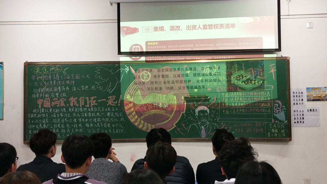 3月22日下午2:30-4:30,开云kaiyun官方网站在二号教学楼进行了“关注两会,学习习近平主席十三届全国人大第一次会议重要讲话精神”的主题团课,开云kaiyun官方网站17级全体班级参加。