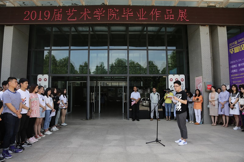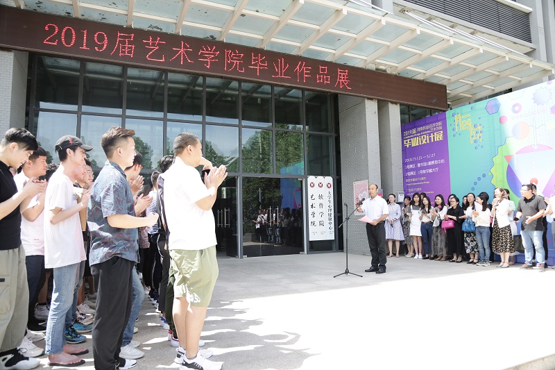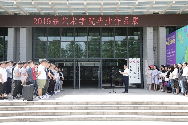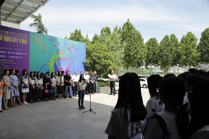 5月21日上午,开云kaiyun官方网站2019届毕业设计作品展开幕式在龙子湖校区1号教学楼门前广场顺利举行。开云kaiyun官方网站班子成员、教师代表以及2019届毕业生500余人参加,开云kaiyun官方网站党总支书记王在钦主持开幕式并宣布展览开幕。